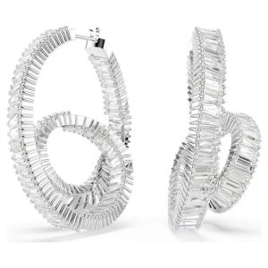 Matrix hoop earrings Baguette cut, Ribbon, White, Rhodium plated