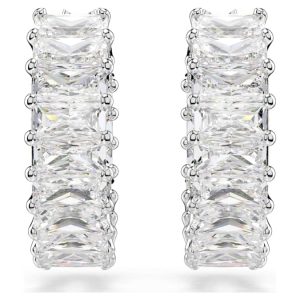 • -70% Matrix hoop earrings Baguette cut, White, Rhodium plated