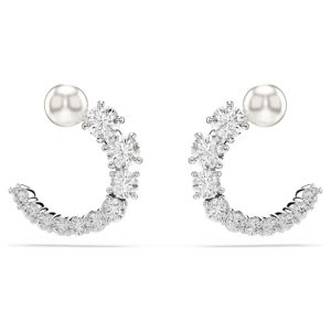 Matrix hoop earrings Crystal pearl, Round cut, White, Rhodium plated