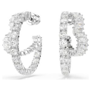 • -70% Matrix hoop earrings Mixed cuts, Heart, White, Rhodium plated