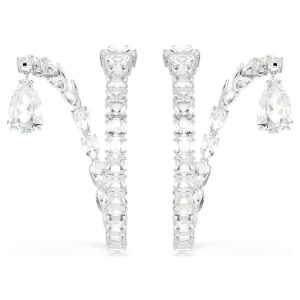 Matrix hoop earrings Pear cut, White, Rhodium plated