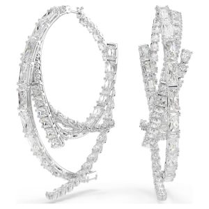 • -70% Matrix hoop earrings Mixed cuts, White, Rhodium plated