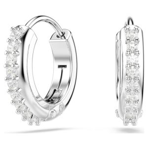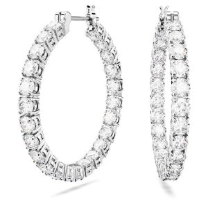 Matrix hoop earrings Round cut, White, Rhodium plated
