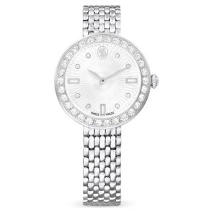Matrix bangle watch Swiss Made, Crystal bracelet, White, Stainless Steel