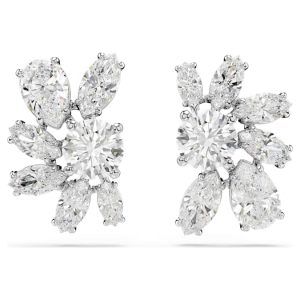 Mesmera stud earrings Mixed cuts, Flower, White, Rhodium plated