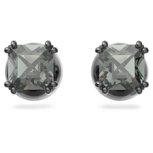 Millenia stud earrings Square cut, Black, Ruthenium plated