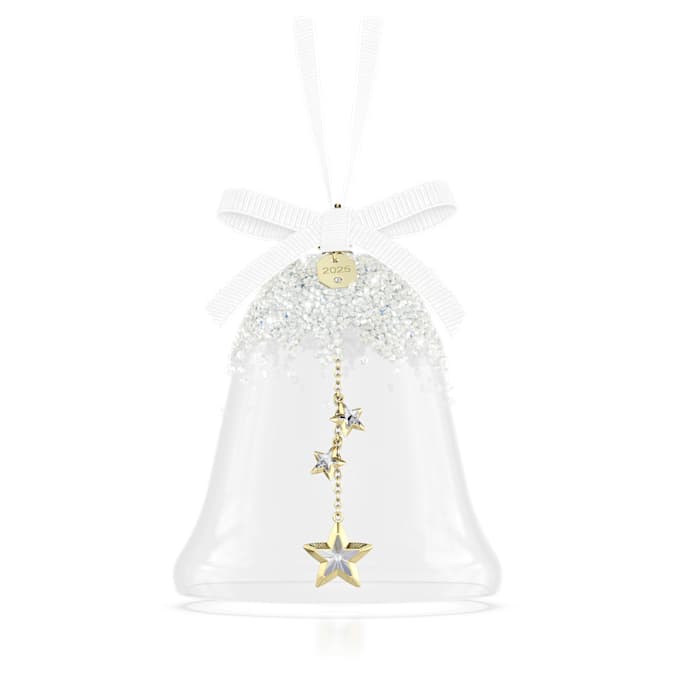 Ring in the holiday season with the Swarovski Annual Edition Bell Ornament for 2025. The immaculate glass design is covered with approximately 1,300 crystals, while the inside contains a clapper of stars produced with 109 facets and a champagne gold-tone metal finish. The piece is suspended from a white grosgrain ribbon with a 2025 engraving on the tag. It’s a joyful mix of delicate beauty and harmonious sound to enhance any festive décor. Decoration object. Not a toy. Not suitable for children under 15.
