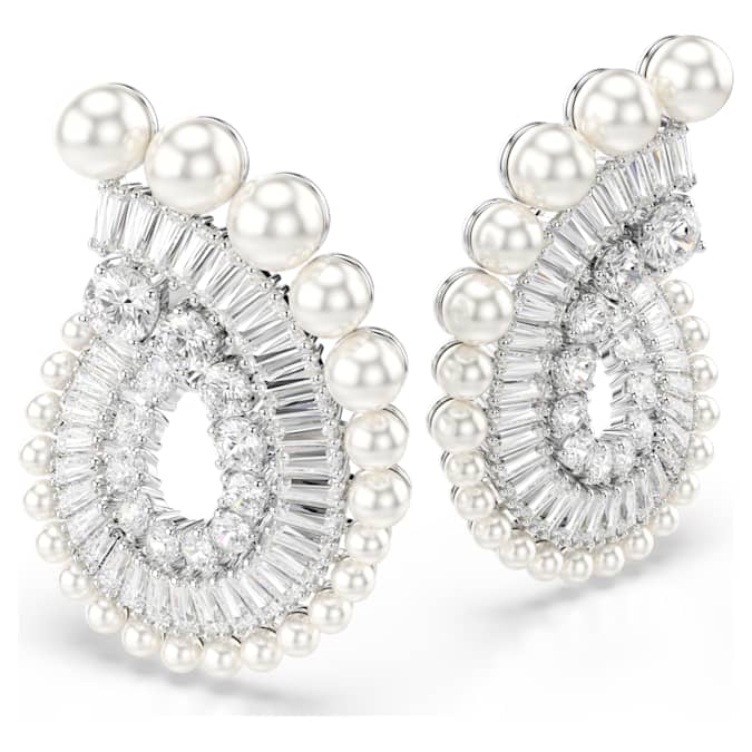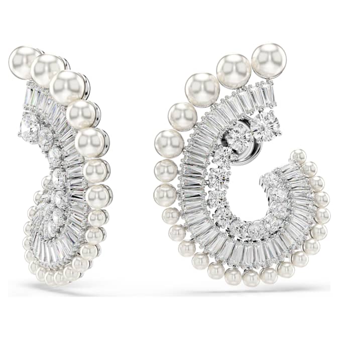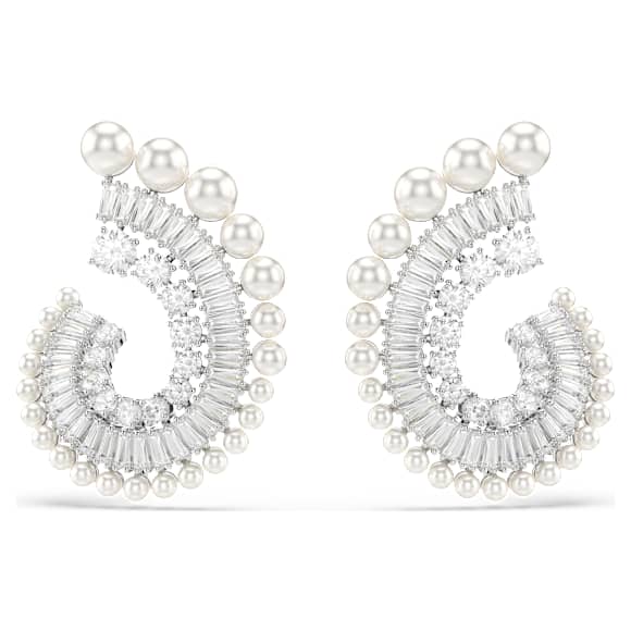 Infused with Swarovski savoir-faire, these striking pierced earrings are an ultra-modern way to elevate any outfit. Each rhodium plated piece features an open spiral of round and baguette-cut Swarovski Zirconia in a gradient of sizes. On the outer section, the design is completed by a gradient of Swarovski Crystal Pearls, which deliver a luxurious and captivating touch. A bright and beautiful pair of earrings that can be easily matched with other pieces from the same creative family.