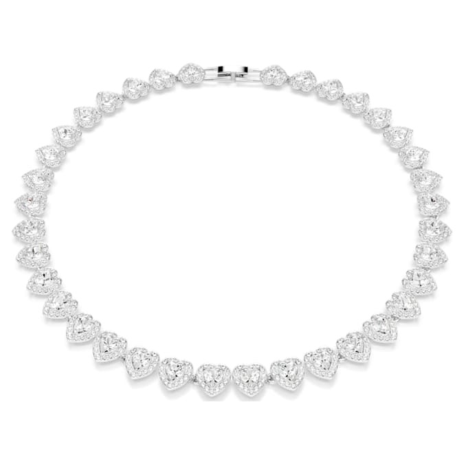 Shining a light on love, this Swarovski necklace is romantic as well as radiant. The rhodium plated design features a full circle of heart-shaped crystals, each surrounded by a glittering halo of clear pavé. Pair this necklace with other matching jewelry to create your own expressive combinations.