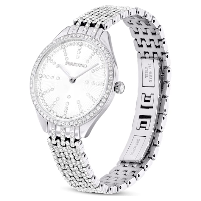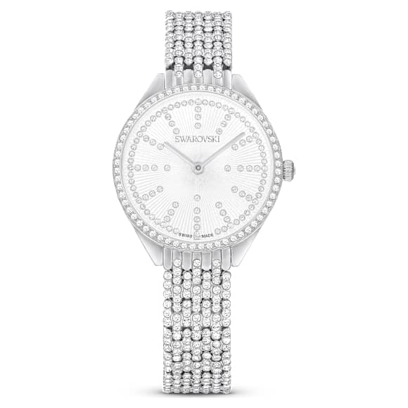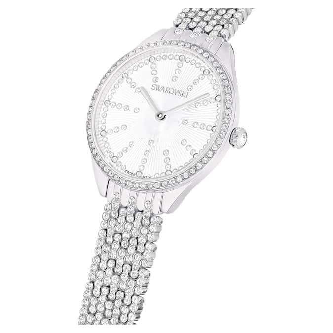 Attract watch Swiss Made, Full pavé, Crystal bracelet, Silver tone, Stainless steel