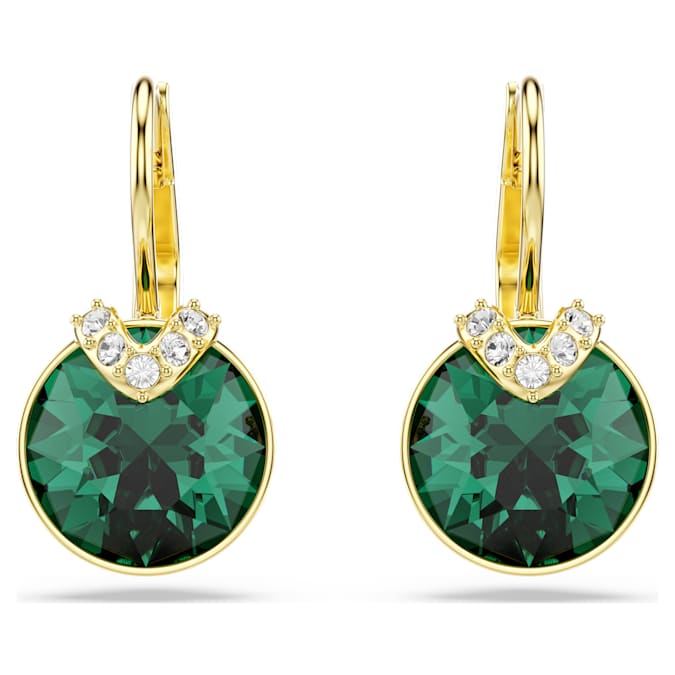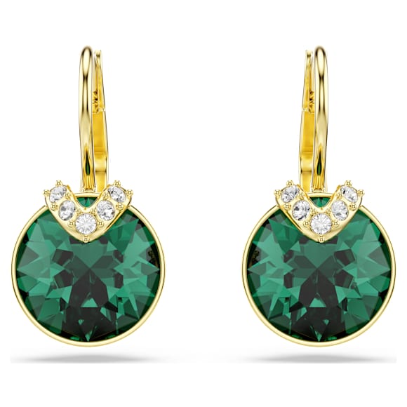 Infuse some color into your everyday wardrobe with this captivating pair of pierced earrings. Each gold-tone plated piece is brought to life with a round-cut crystal in green, creating a look of pure joy. A perfect choice for your day-to-night styling, these earrings can be worn together with a matching green pendant.