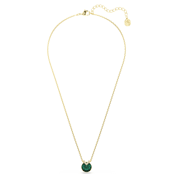 This mesmerizing V-shape pendant has eye-catching appeal thanks to its central green crystal set in gold-tone plating. A flourish of shimmering pavé adds an extra layer of beauty, while the delicate chain exudes pure elegance. Wear it together with the matching earrings for a wondrous combination.