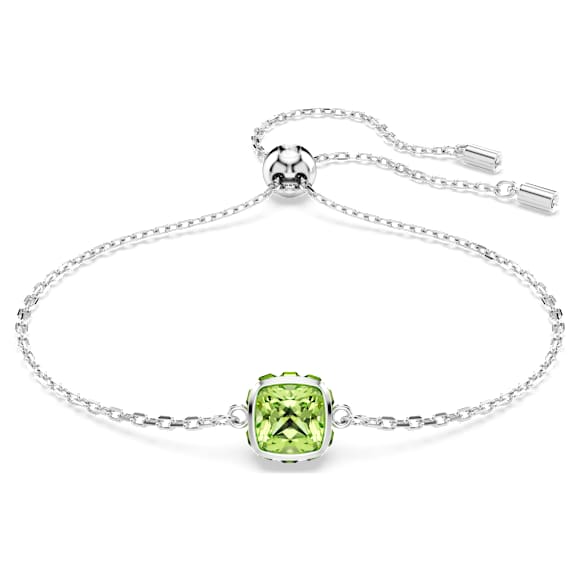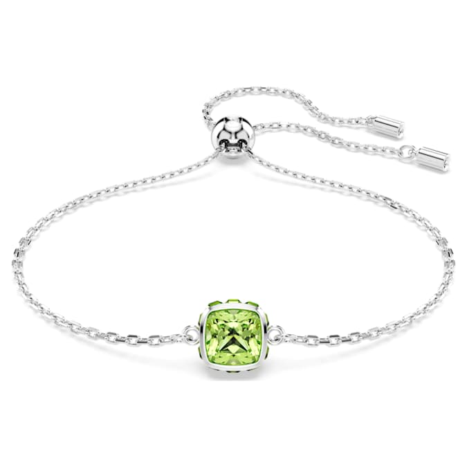 Infused with meaning, this bracelet is inspired by the birthstone of August. Crafted with a delicate chain, the rhodium plated jewelry features a square-cut crystal in a peridot-green hue, said to represent new perspectives and eternal empowerment. Perfect for a magical birthday gift or to celebrate a date that is significant to you.