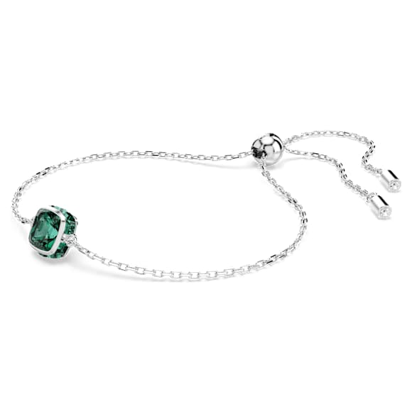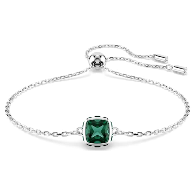 Infused with meaning, this bracelet is inspired by the birthstone of May. Suspended from a delicate chain, the rhodium plated jewelry features a single square-cut stone in an emerald green hue, a nature-inspired color that evokes birth and renewal. Perfect for a magical birthday gift or to celebrate a date that is significant to you.