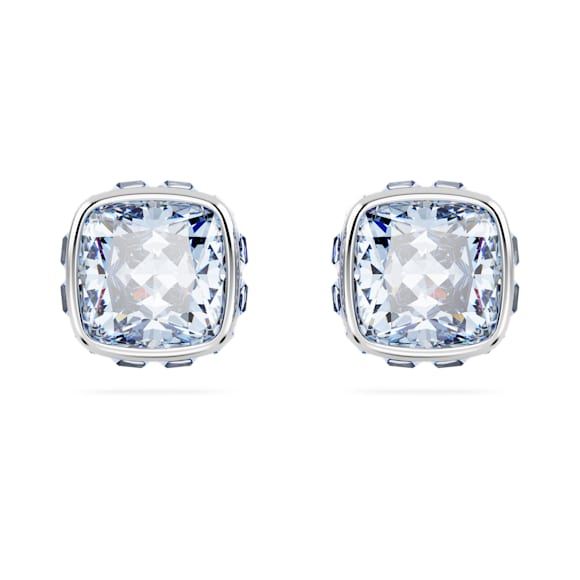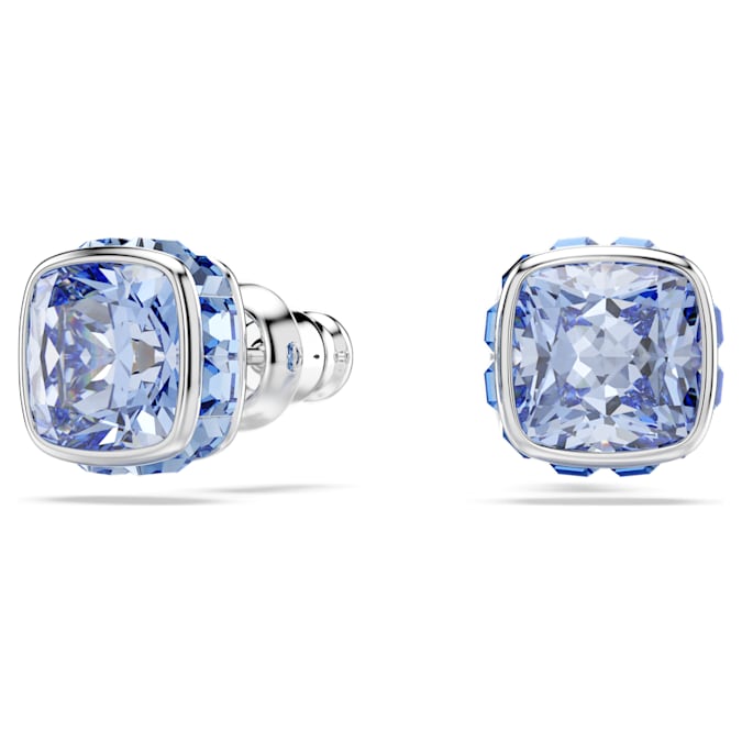 Vibrant, versatile and easy-to-wear, this pair of pierced earrings is inspired by the birthstone of March. The rhodium plated jewelry features a square-cut stone in an ocean blue hue, a soothing shade that offers wearers profound happiness and the inspiration for self-expression. This meaningful design makes a magical birthday gift or a perfect gift for yourself.