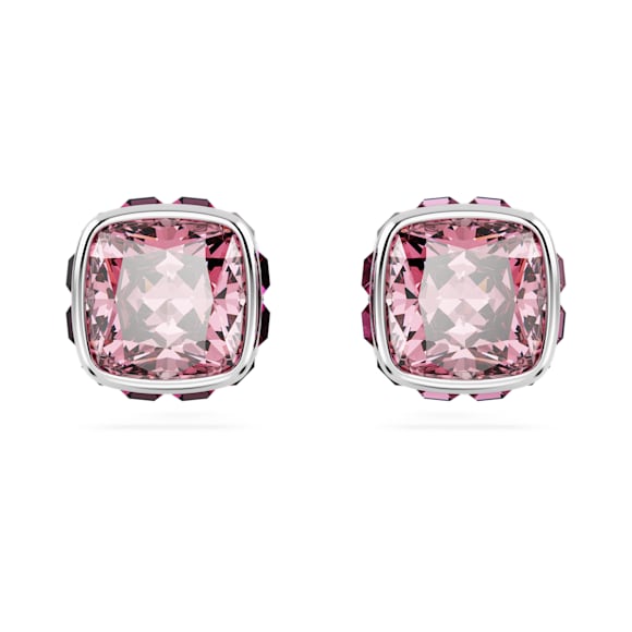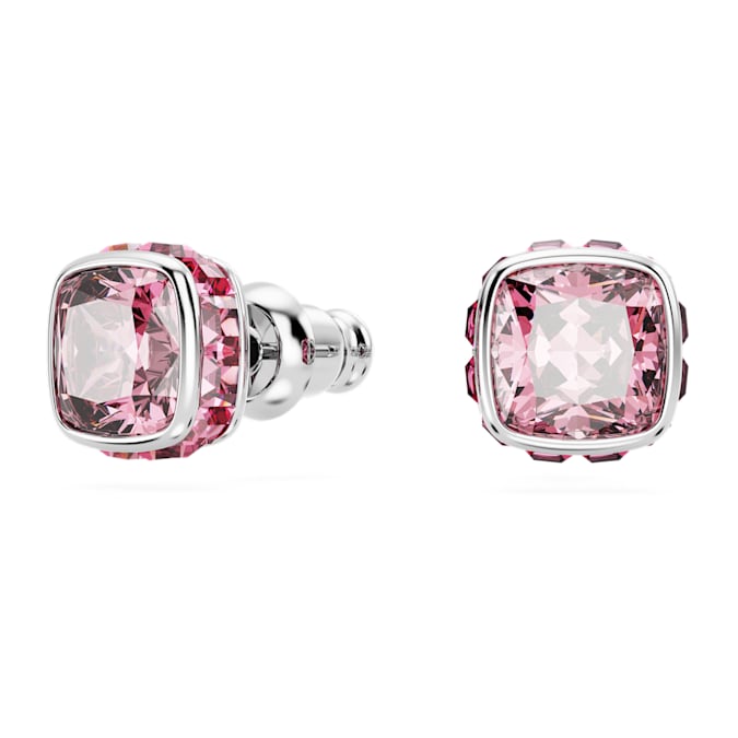 Birthstone stud earrings Square cut, October, Pink, Rhodium plated