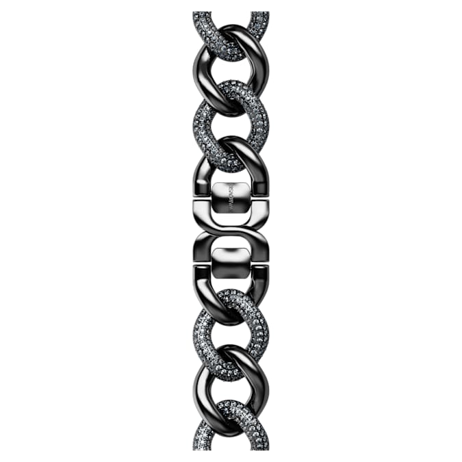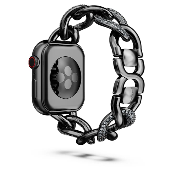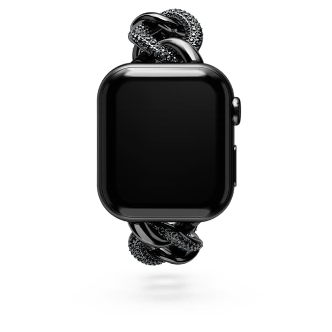 Keep time in style with this striking strap striking strap crafted for compatibility with Apple Watch®. The eye-catching design features a chain of PVD black tone, with every second link adorned in silver night crystals . Style with your Swarovski jewelry. This strap suits Apple Watches® sized 40mm or 41mm, including Series 4 – 9 and SE. Apple Watch® is a trademark of Apple Inc. This product is delivered with a standard size bracelet and two additional links, enabling it to be made longer or shorter with the help of our instore staff.