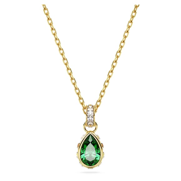 Chroma pendant Pear cut, Green, Gold-tone plated
