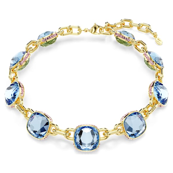 Chroma Tennis necklace Cushion cut, Multicolored, Gold-tone plated