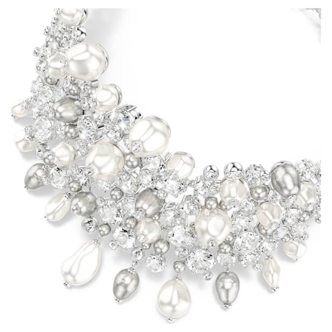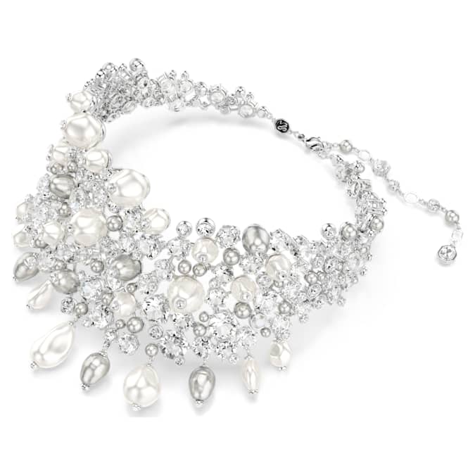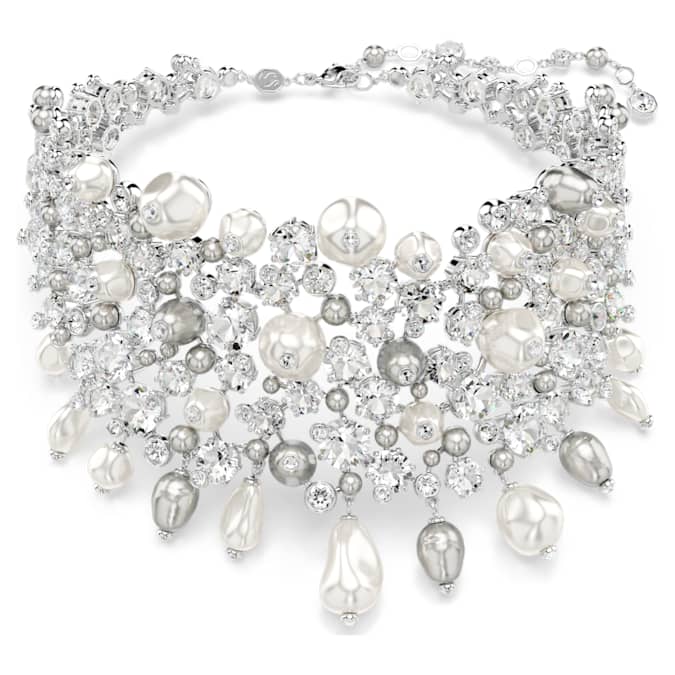 Radiant, elegant, and expressive, this Constella choker is the ultimate statement piece for a special occasion. Showcasing an intricate level of savoir-faire, the rhodium plated design features various sizes of clear crystals and white and gray Swarovski Crystal Pearls, combining to create a truly refined appearance. Pair it with the matching clip earrings or brooch for a truly showstopping look.