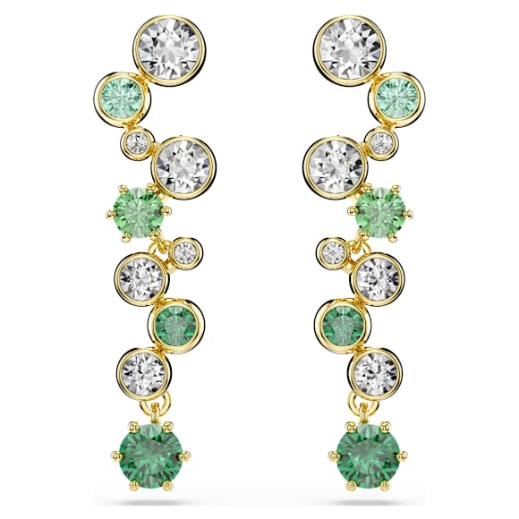 These starry Constella earrings are a unique choice for vivid self-expression. The gold-tone plated strands feature clear crystals and green Swarovski Zirconia in various sizes and shades, each presented in a prong or bezel setting. Wear them alongside the matching Constella necklace to maximize the light and color in your wardrobe.