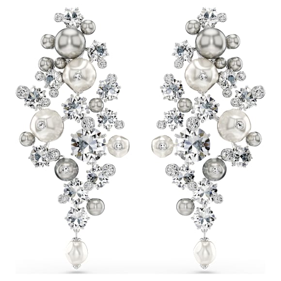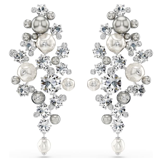 Curate the perfect look of elegance with these statement clip earrings. Showcasing an intricate level of savoir-faire, each rhodium plated piece features various sizes of clear crystals and white and gray Swarovski Crystal Pearls, combining to create a truly refined appearance. For ultimate versatility, the bottom section is detachable, allowing the earrings to be worn as a chandelier style or a smaller clip. Pair them with the matching Constella choker or brooch to truly steal the spotlight.
