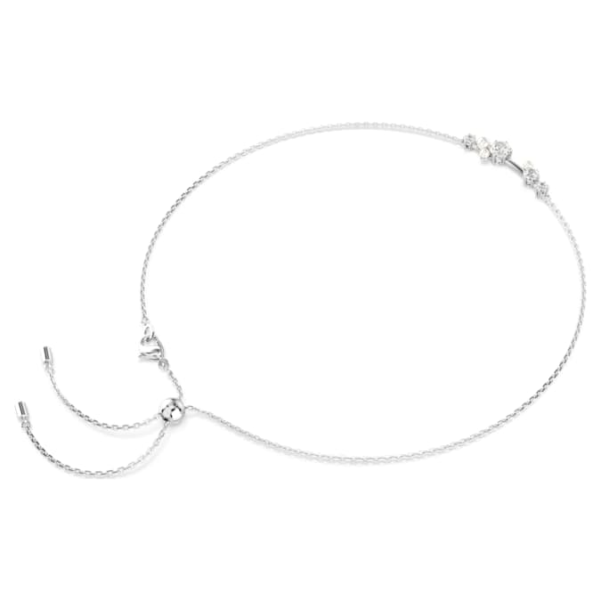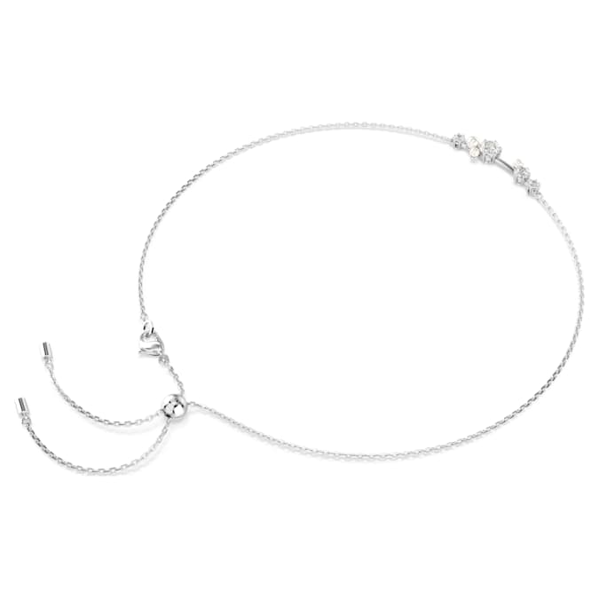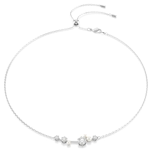 Launch your style into the stars with this versatile Constella creation. The rhodium plated design features a special pulling mechanism, allowing you to wear the jewelry as a necklace or a choker. At the front, the different-sized Swarovski Zirconia and Swarovski Crystal Pearls almost seem to float among the discrete articulations, producing a look of cosmic wonder. Play with the different styling possibilities and wear it alongside a matching ring for endless reflections of light.