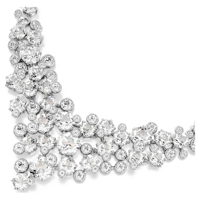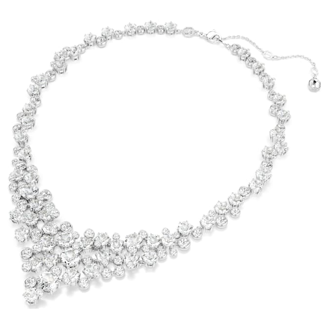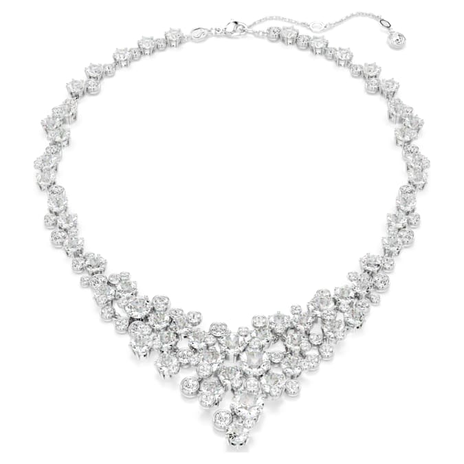 Take your radiance to the next level with this showstopping v-shape necklace. Like a cluster of shining stars, the rhodium plated design features multiple layers of clear Swarovski Crystals that beautifully accentuate the front of any outfit. The lobster clasp allows for an adjustable fit, giving you a wondrous accessory choice for your seasonal celebrations.