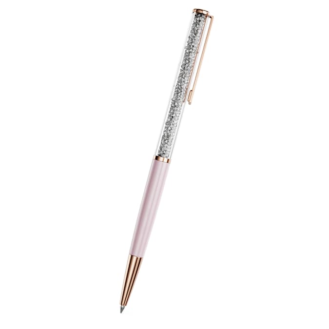 This slender ballpoint pen offers a timeless accessory for endless creativity. The slimline design is filled with around 400 clear crystals, which are visible through the long transparent window. Along with a lacquered blush pink barrel, the pen includes gold-tone finishing for an ultra-luxurious look. Gift to yourself or someone you know who has a poetic way with words. Refills of black and blue inks are available to purchase in Swarovski stores.