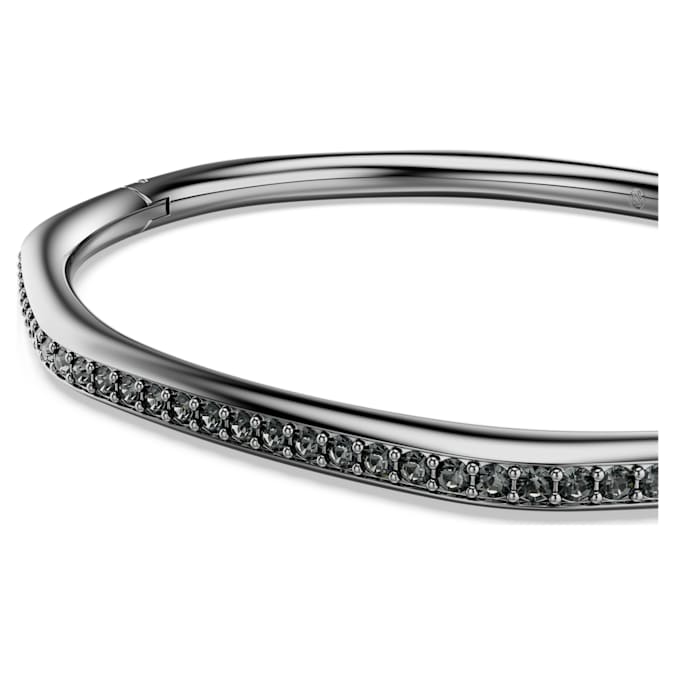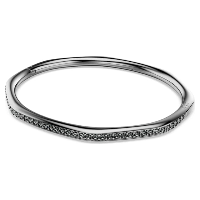 With its deep metallic tones, this Dextera bangle makes a chic statement. The slender octagonal design is ruthenium plated and accented with a row of black crystals in a refined prong setting. Style yours solo or with a matching pendant and signet ring to coordinate the sleek look.
