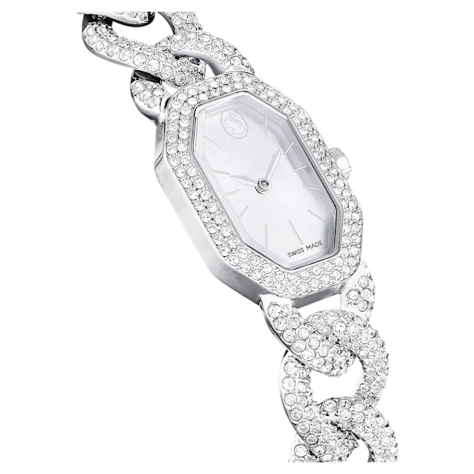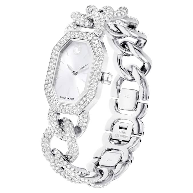 Dextera chain watch Swiss Made, Crystal bracelet, Silver tone, Stainless Steel