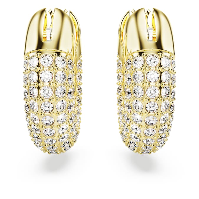 A modern spin on classic hoop earrings, this genderless pair will lend a dynamic touch to any outfit. Its sculptural design celebrates Swarovski’s iconic Pavé technique with glittering foiled crystals set against a sleek gold-tone plated frame. Not just for daytime, wear this statement duo with after-dark looks, too. These earrings are part of the Dextera Family, designed for Collection III.