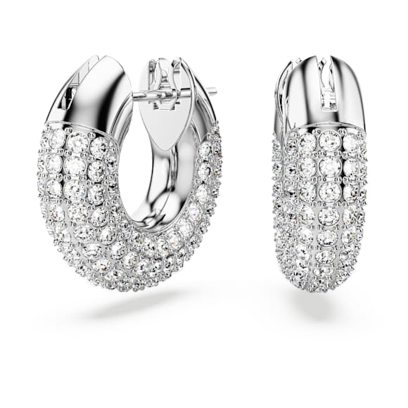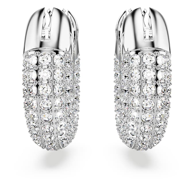 A modern spin on classic hoop earrings, this genderless pair will lend a dynamic touch to any outfit. Its sculptural design celebrates Swarovski’s iconic pavé technique with glittering foiled crystals set against a rhodium plated frame. Not just for daytime, wear this statement duo with after-dark looks, too. These earrings are part of the Dextera family, designed by Creative Director Giovanna Engelbert for Collection II.