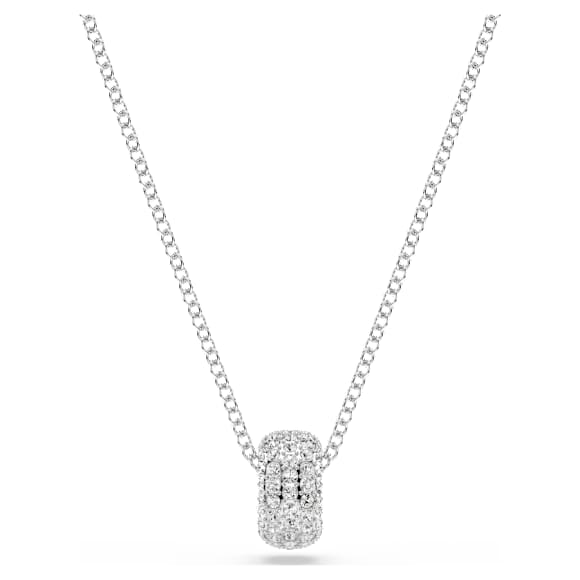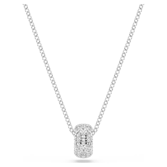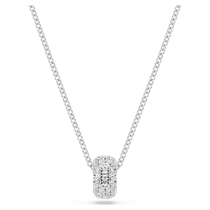 The beauty is in the simplicity of this elegant pendant. It shimmers with serene clear pavé illuminated by the rhodium plated setting. A jewelry box favorite for dressing up or down.