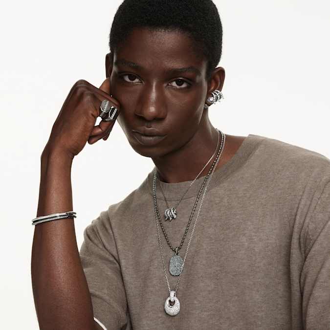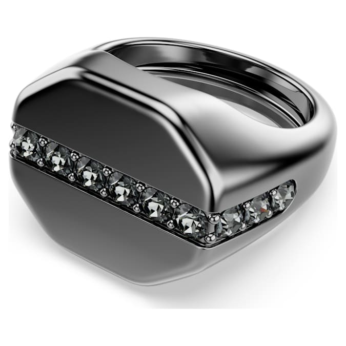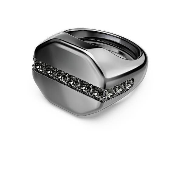 A stunning contrast between light and dark, this Dextera signet ring is a perfect choice for alternative styling. The band itself is ruthenium plated for a metallic finish and features a strip of silvery black crystals inspired by the night sky. For extra innovation, the ring includes an adjustable mechanism to fit all sizes. Wear it alongside a matching pendant or bangle to coordinate your look.
