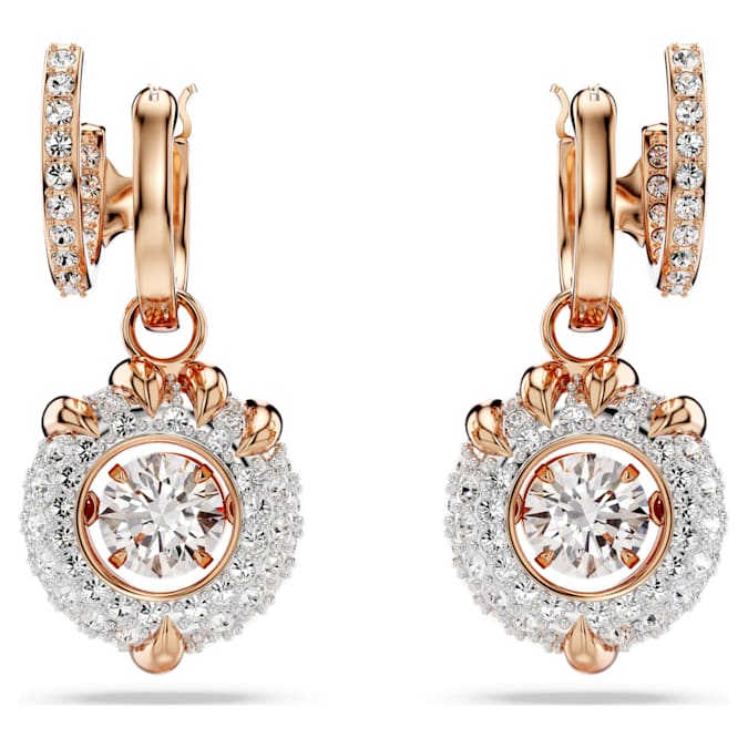 Illuminate your look with these auspicious Year of the Dragon earrings. Each rose gold-tone plated piece features a powerful dragon’s claw, which holds on tightly to a lucky coin adorned with clear crystals, with a dancing Swarovski Zirconia at its center. A detachable link is also included, adding extra versatility to the style. Wear these pierced earrings yourself or gift them to someone special.