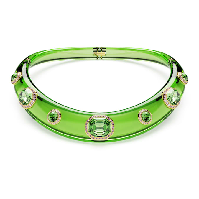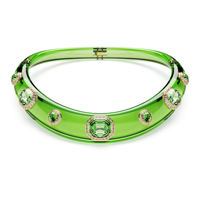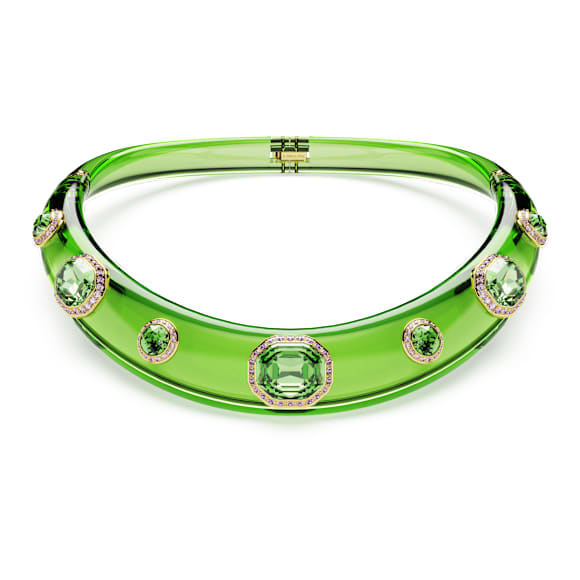 Hypnotic yet joyful, this statement choker is one of Swarovski’s most mesmerizing candy creations. The vivid design features a green band, with alternating round and octagon-cut green crystals, each surrounded by glittering pink pavé in a gold-tone plated frame. A piece of jewelry that will instantly energize your style and express your most playful side.