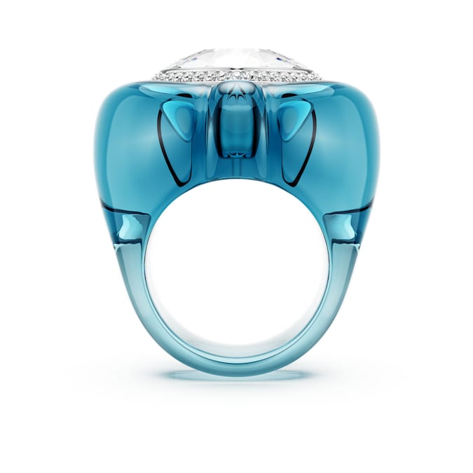 Inspired by the joy of the Pop Art movement, this cocktail ring is a playful way to colorize your style. The heart-shaped blue band is matched by a clear heart-shaped crystal, surrounded by clear pavé in a rhodium plated frame. Wear it any time for a striking bolt of brightness or express your creativity by teaming it with other cocktail rings from the Dulcis family.