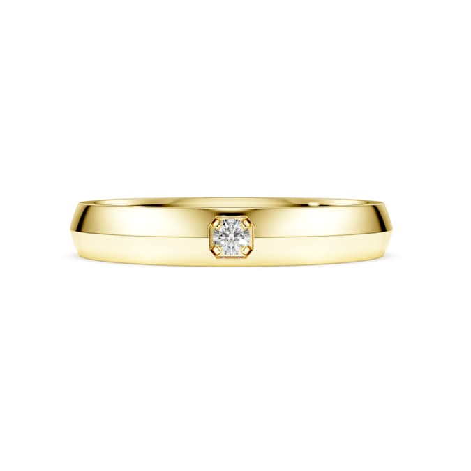 Signifying an everlasting commitment, this Eternity ring is crafted for timeless men’s styling. The facetted band is made in 14K yellow gold and features a single laboratory grown diamond totaling 0.05 carat. Expressing high brilliance and sophistication, it’s the perfect piece of jewelry for a men’s wedding ring or a special gift. This jewelry is IGI (International Gemological Institute) certified and is part of the Eternity collection.