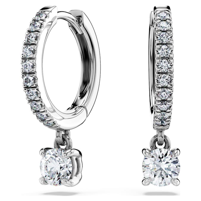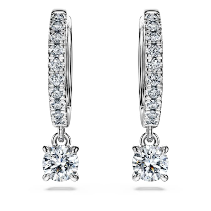 These exquisite pierced earrings are crafted for enduring beauty and endless charm. On the front side, each 14K white gold hoop is detailed with laboratory grown diamonds, while a round laboratory grown diamond hangs beneath. Totaling 0.7 carat, they can be paired with a matching necklace to boost the radiance. This jewelry is IGI (International Gemological Institute) certified and is part of the Eternity collection.