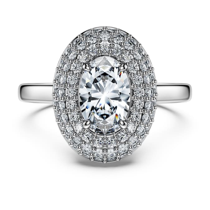 This opulent Eternity ring is an everlasting expression of Swarovski beauty. The 14K white gold band features an oval, prong-set laboratory grown diamond, surrounded by a dazzling double halo of round laboratory grown diamonds – all totaling 1.5 carat. A striking engagement style to cherish forever. This jewelry is IGI (International Gemological Institute) certified and is part of the Eternity collection.