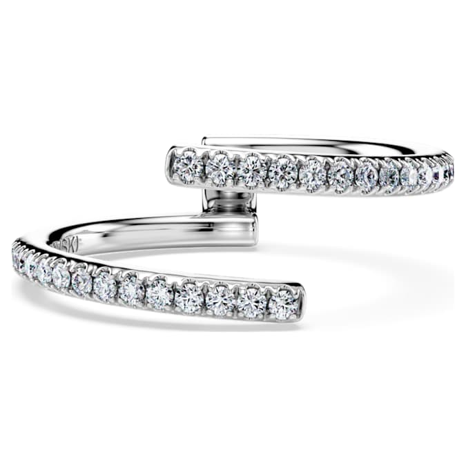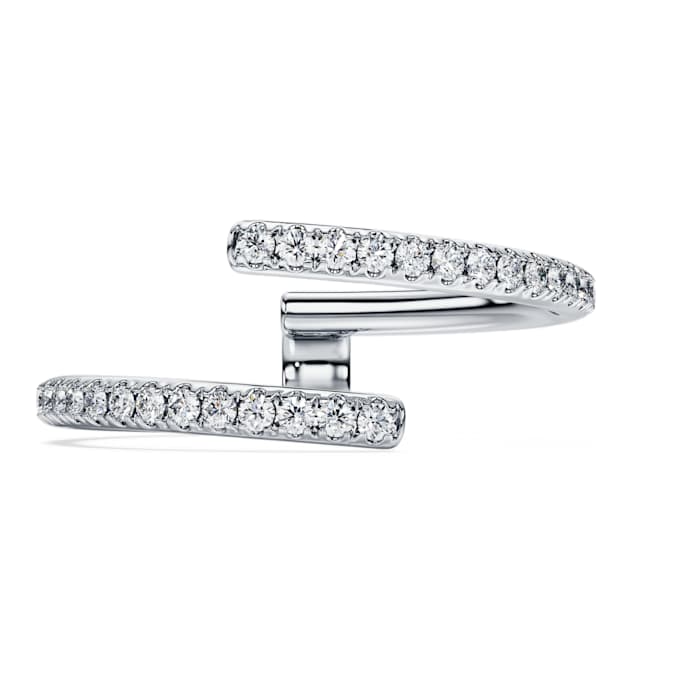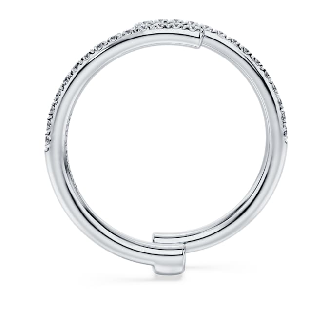 This incomparable Eternity ring combines unique form with glittering beauty. The 14K white gold band features an open double shank design with uniform rows of round laboratory grown diamonds totaling 0.2 carat. The perfect match for our asymmetric solitaire ring. This jewelry is IGI (International Gemological Institute) certified and is part of the Eternity collection.