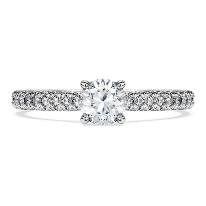 Every detail of this radiant Eternity ring has been crafted to catch the light. The 14K white gold design is detailed with small laboratory grown diamonds, while a round, prong-set laboratory grown diamond sits at the center – all totaling 0.7 carat. An elegant piece of beauty that makes a sensational engagement choice. This jewelry is IGI (International Gemological Institute) certified and is part of the Eternity collection.
