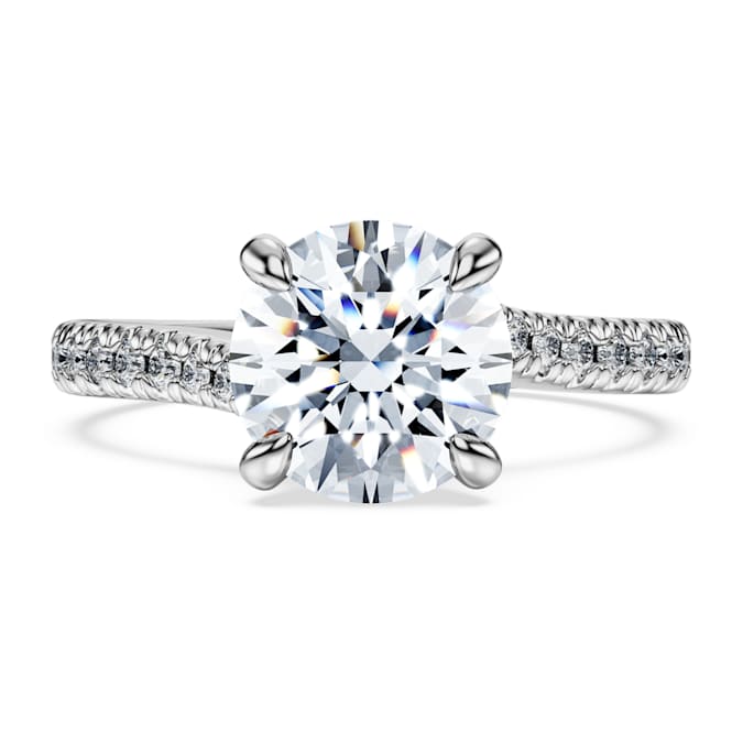 Light up the room with this unique and glamorous Eternity ring. The asymmetrical 14K white gold design is detailed with small laboratory grown diamonds, and a round, prong-set laboratory grown diamond at the center – all totaling 2.25 carat. A captivating choice that can be paired with our matching open-style band ring. This jewelry is IGI (International Gemological Institute) certified and is part of the Eternity collection.