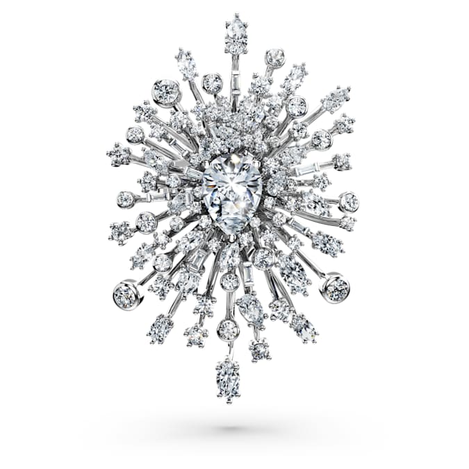 Like a collision of stars in a light-filled galaxy, this dramatic brooch explodes with wondrous beauty. The 18K white gold design features a multitude of laboratory grown diamonds, presented in a variety of shapes and sizes, and extending out in different directions. The overall effect is one of scintillating joy. Wear this piece to inject any outfit with a spellbinding display of Swarovski savoir-faire. This jewelry is part of the Galaxy collection created by Giovanna Engelbert. The laboratory grown diamonds in the Galaxy collection are graded and certified by IGI (International Gemological Institute) according to the 4Cs of diamond quality. This piece is made to order.