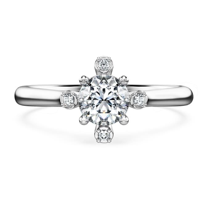 Crafted with a burst of dazzling beauty, this bright Swarovski ring is luxurious in every detail. The 14K white gold band features a round laboratory grown diamond at the center, which is expertly faceted for maximum brilliance. Four smaller laboratory grown diamonds are artfully arranged around it to create a burst of light-filled extravagance. Gift this ring to a loved one alongside a matching necklace. This jewelry is IGI (International Gemological Institute) certified and is part of the Galaxy collection created by Giovanna Engelbert.