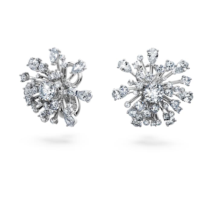 Crafted with exquisite artistry, these striking pierced earrings look like an explosion of light. Each 14K white gold piece features a laboratory grown diamond at the center, expertly faceted for maximum brilliance. A multitude of smaller laboratory grown diamonds in a variety of fancy shapes and sizes surround the center stone in an innovative formation. Pair with a matching ring or necklace for sensational glamour. This jewelry is part of the Galaxy collection created by Giovanna Engelbert. The laboratory grown diamonds in the Galaxy Collection are graded and certified by IGI (International Gemological Institute) according to the 4Cs of diamond quality.