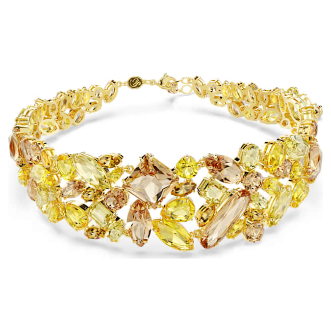Gema choker Mixed cuts, Yellow, Gold-tone plated