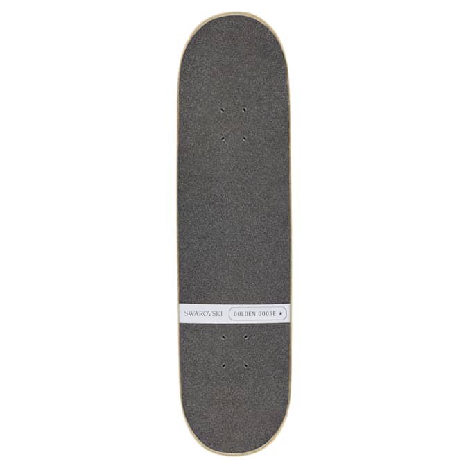 With its unique mix of crystals, graphic lines, and skate-scene style, this extraordinary Golden Goose skateboard from Swarovski Creators Lab is a collectible art piece. The deck features a sleek top side with a crystallized band displaying the Swarovski and Golden Goose wordmarks. On the underside, the distinctive Golden Goose Flag is fully-drenched in black, white, and gray Swarovski Crystals in a dynamic design that channels the freedom of expression found in the skateboarding world. This original skateboard is part of Swarovski Creators Lab and is exclusively available from swarovski.com or in select Swarovski stores. The skateboard is a showpiece and is not designed for use.