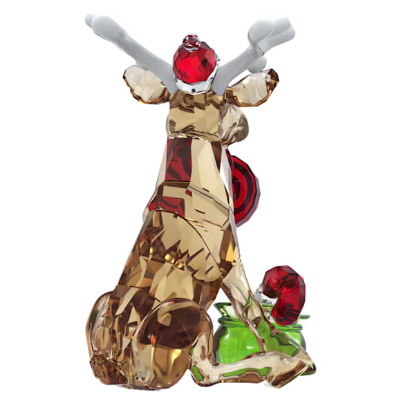 This delightful reindeer figurine will bring a touch of festive magic to your home. The playful design is crafted with 690 facets and features refined details, such as a green bag of candy and a mini Santa hat. White lacquered accents provide a sleek finish, while the reindeer’s cute expression will always raise a smile. A perfect collectible to celebrate the festive season. Decoration object. Not a toy. Not suitable for children under 15.